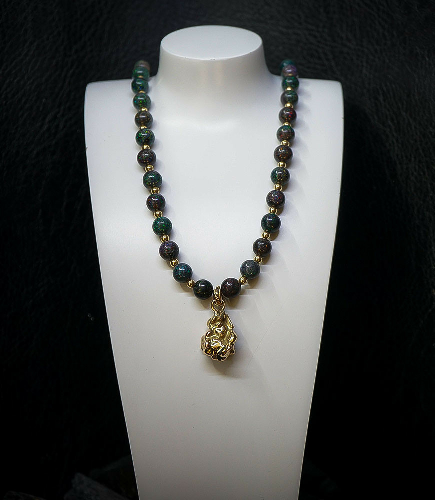 Diamètre du pendentif 1,5 cm diamètre des perles d'opales 0,7 cm et diamètre des perles en or 0,3 cm