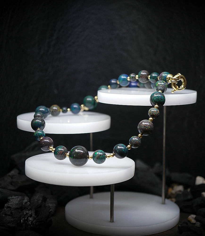 Diamètre des perles d'opales / 0,6cm / 0,8cm / 1 cm et la perle centrale 1,4 cm
