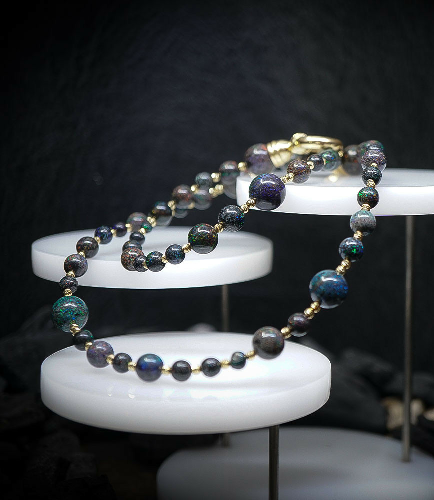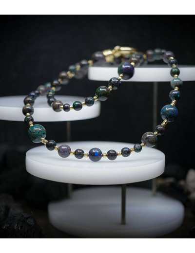 L’éclat subtil des opales est sublimé par des éléments en or 18 carats (750/1000).