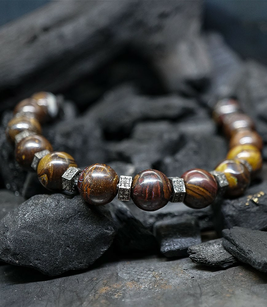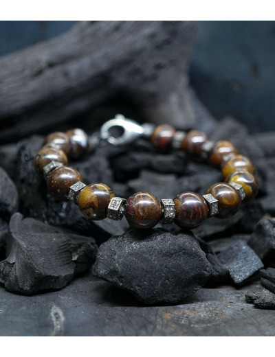 Collection Mineral Pearls - Bracelet en Argent Massif, Opale Boulder et diamants.