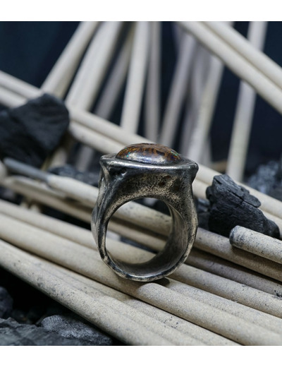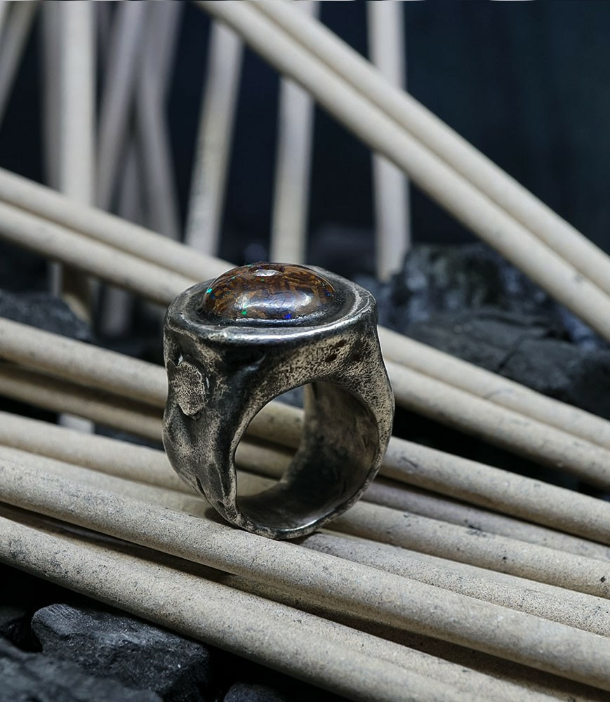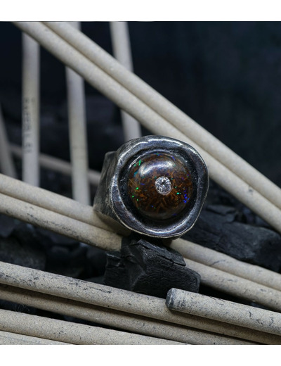 First Men Collection - Bague Argent Massif, Opale Boulder et diamant