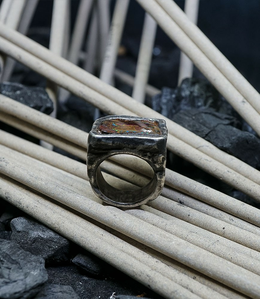 Référence de cette collection, l'art des premiers hommes décliné en bagues, bracelets, colliers.