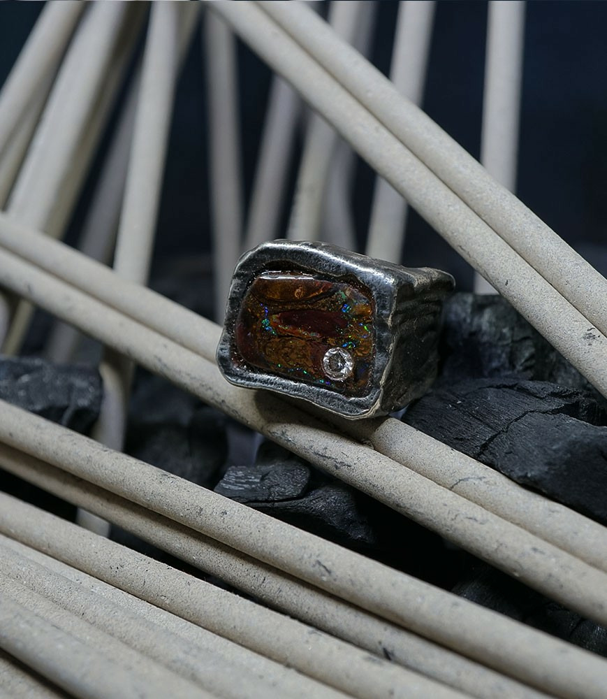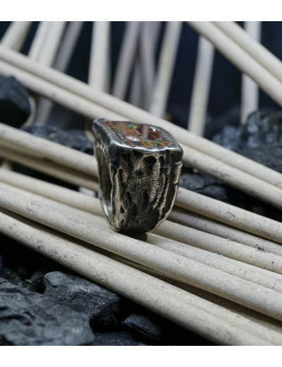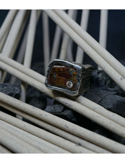 First Men Collection - Bague Argent Massif, Opale Boulder et diamant