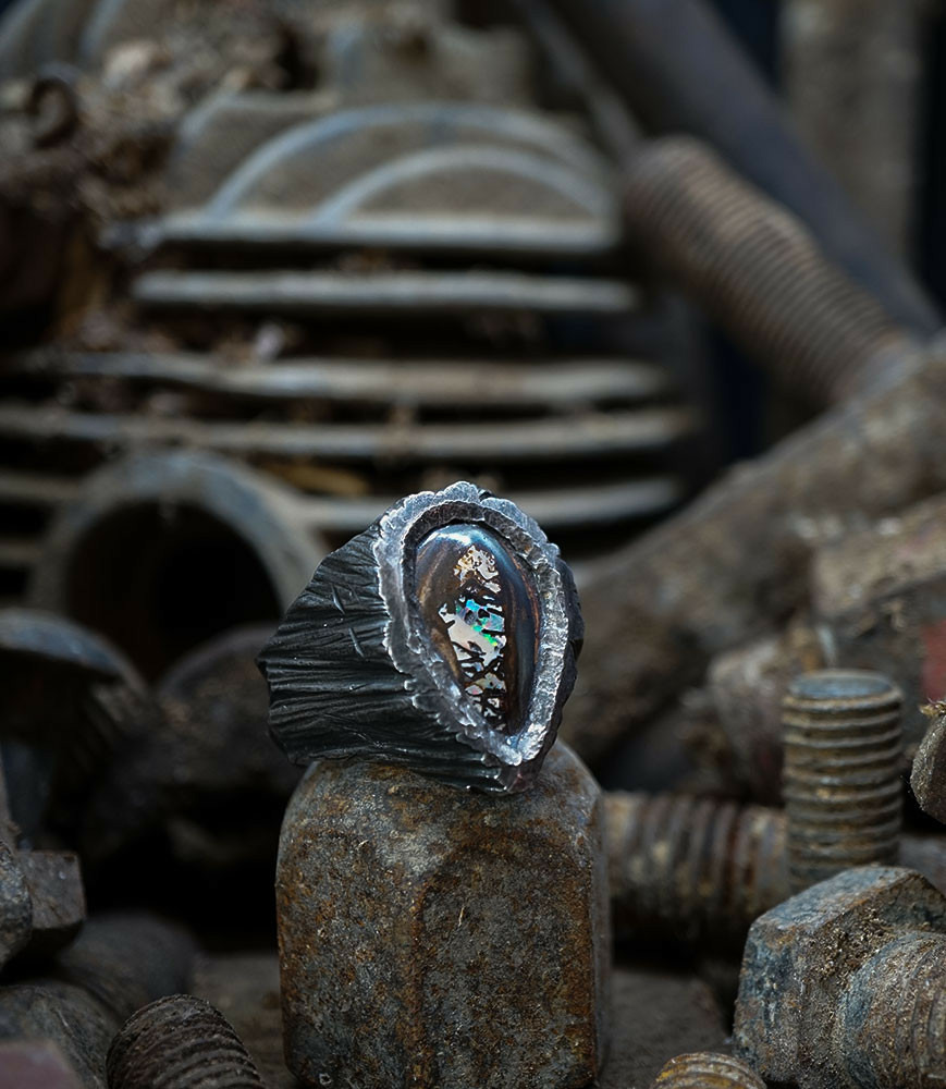 First Men Collection - Bague Argent Massif et Opale Boulder