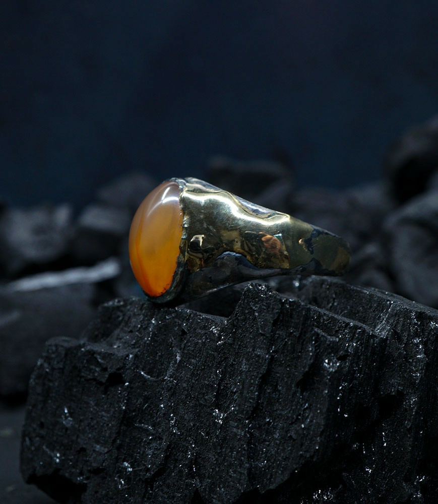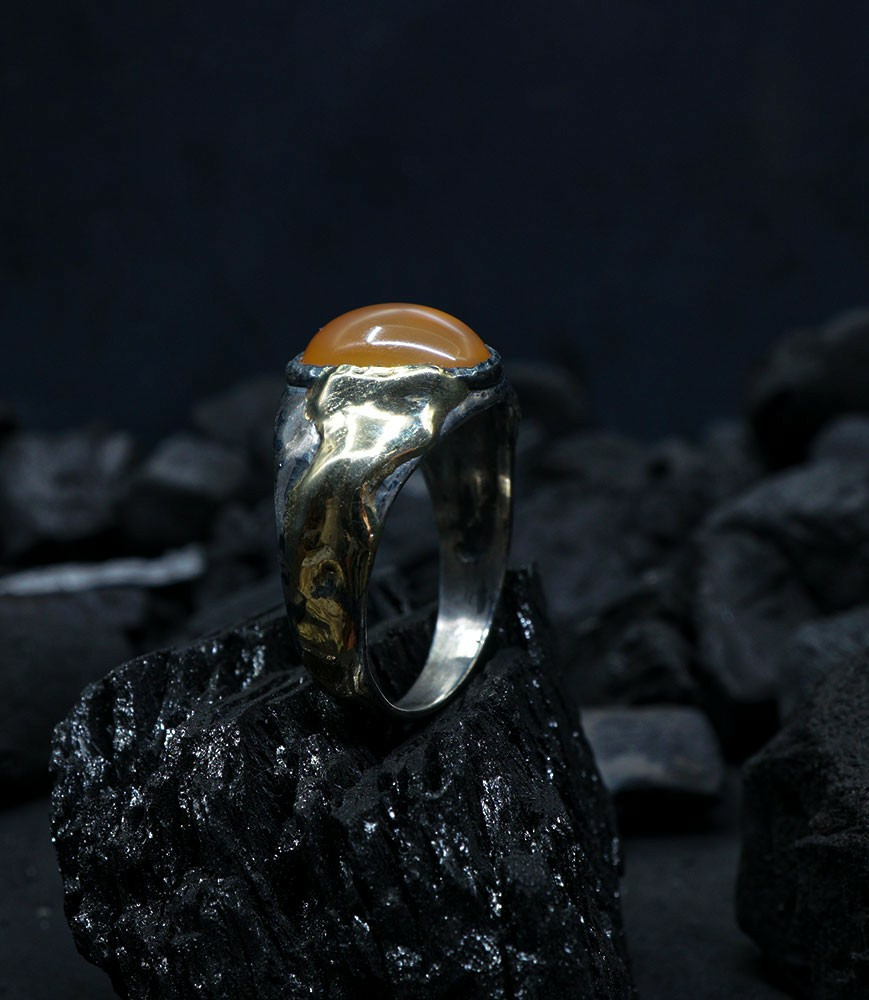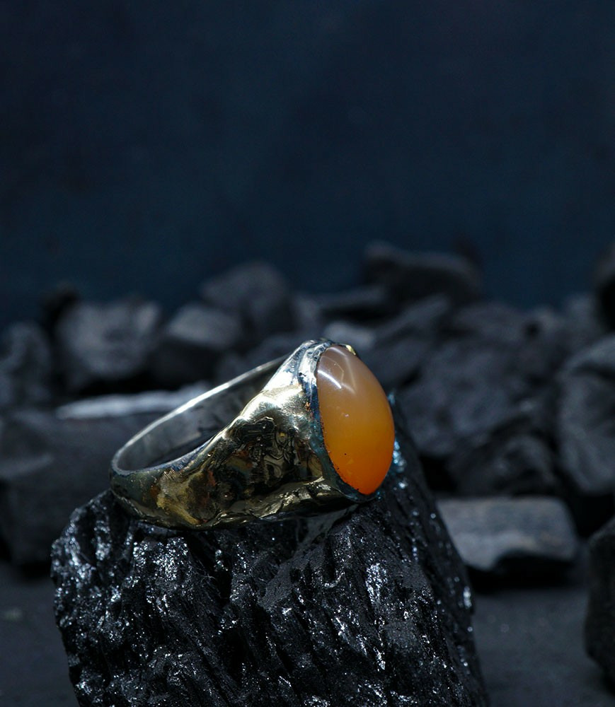 Geologic Stones Collection - Bagues Cornaline Argent et Or Massif