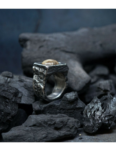 Geologic Stones Collection - Bagues Argent Massif et Bois fossilisé