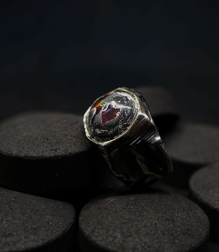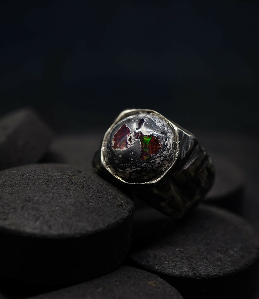 Geologic Stones Collection - Bagues Argent Massif et Opale galaxie du mexique