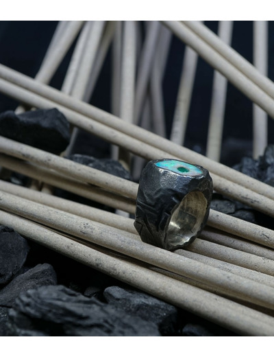 Parfois les stries dans le métal de la bague rappellent la superposition des couches sédimentaires géologiques que l'on peut observer dans les roches. D'autres bijoux en argent 925/1000 et or 750/1000, peuvent se rapprocher du volcanisme et plus précisément l'aspect des roches volcaniques après éruption comme les scories, les métaux semblent avoir fusionnés ou avoir fondus, ou même avoir éclatés, sous l'effet d'une chaleur extrême.