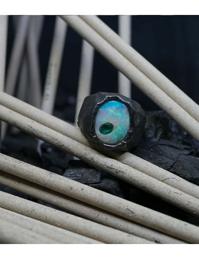 Geologic Stones Collection - Bagues Argent Massif, Opale et émeraude
