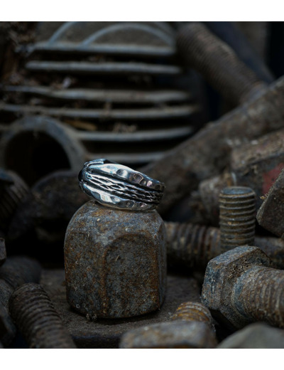 Parfois les stries dans le métal de la bague rappellent la superposition des couches sédimentaires géologiques que l'on peut observer dans les roches. D'autres bijoux en argent 925/1000 et or 750/1000, peuvent se rapprocher du volcanisme et plus précisément l'aspect des roches volcaniques après éruption comme les scories, les métaux semblent avoir fusionnés ou avoir fondus, ou même avoir éclatés, sous l'effet d'une chaleur extrême.