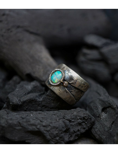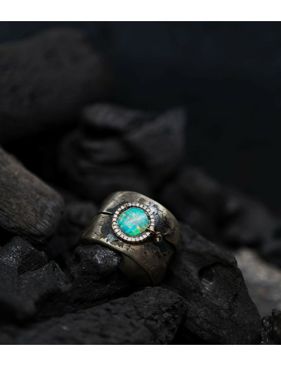 Geologic Stones Collection - Bague Argent, Or, Diamants et Opale