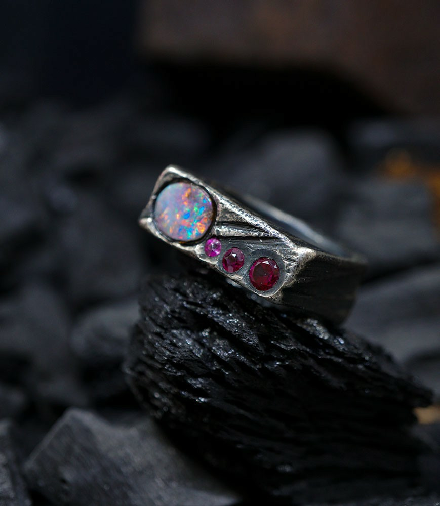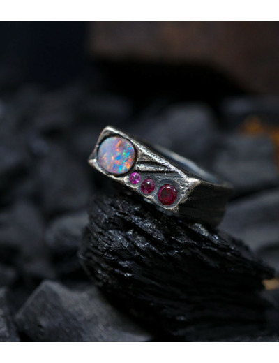 Geologic Stones Collection - Bagues Argent Massif, Opale et Rubis