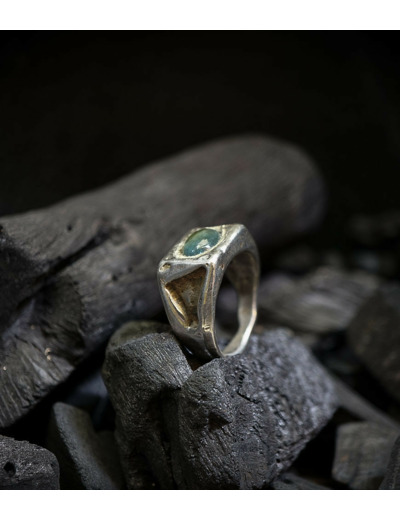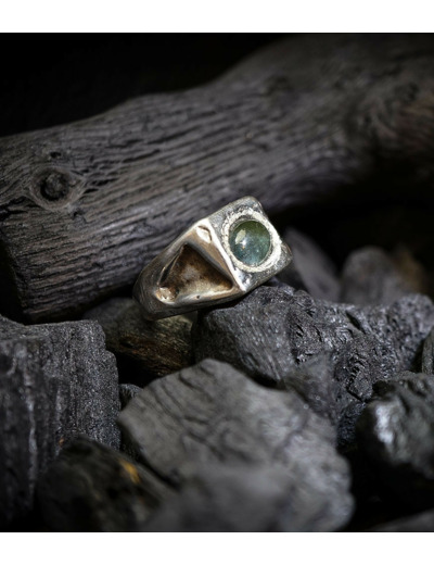 Geologic Stones Collection - Bagues Argent Massif et Tourmaline verte
