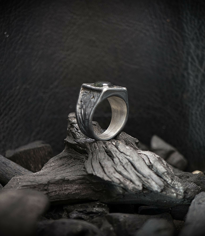 Parfois les stries dans le métal de la bague rappellent la superposition des couches sédimentaires géologiques que l'on peut observer dans les roches. D'autres bijoux en argent 925/1000 et or 750/1000, peuvent se rapprocher du volcanisme et plus précisément l'aspect des roches volcaniques après éruption comme les scories, les métaux semblent avoir fusionnés ou avoir fondus, ou même avoir éclatés, sous l'effet d'une chaleur extrême.