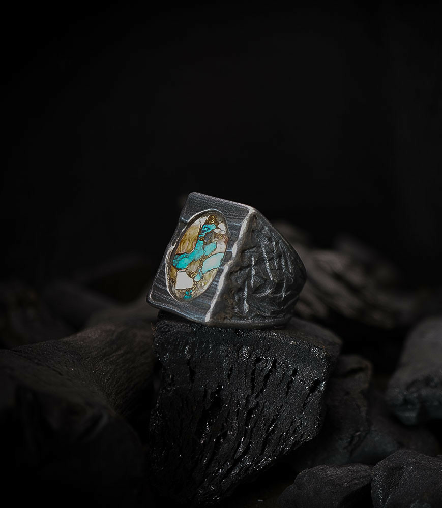 Geologic Collection - Bagues Argent Massif et Turquoise