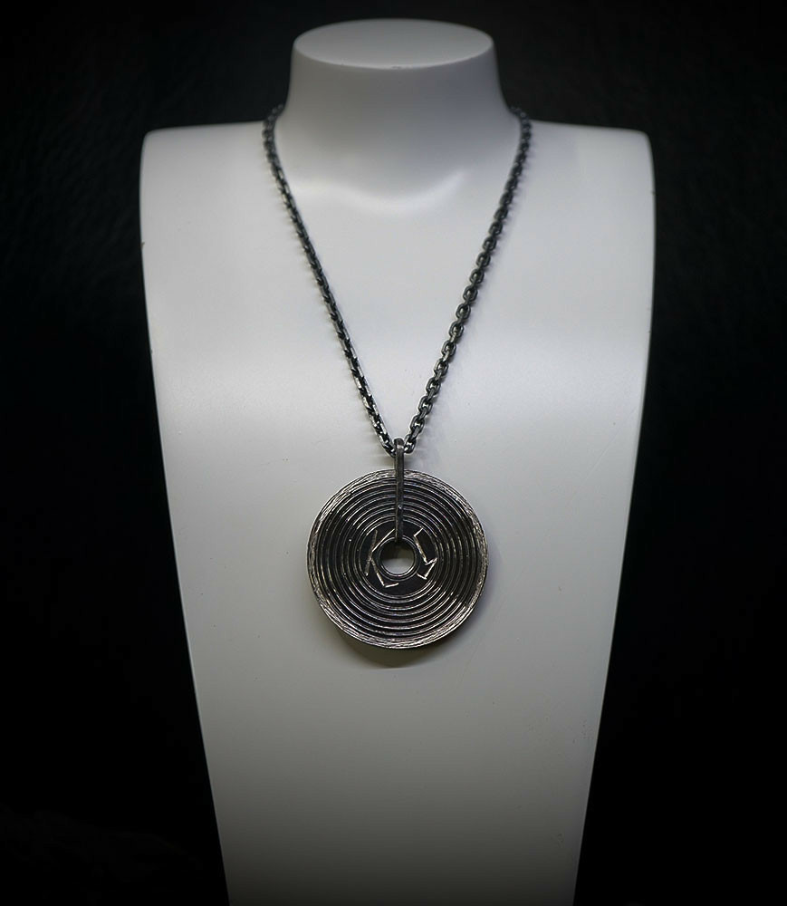 Unicité renforcée par la patine noircie appliquée sur l'argent 925/1000 qui s'estompe peu à peu avec le temps. Vivant, le bijou révèlera des zones où l'aspect brillant du métal reprendra ses droits.