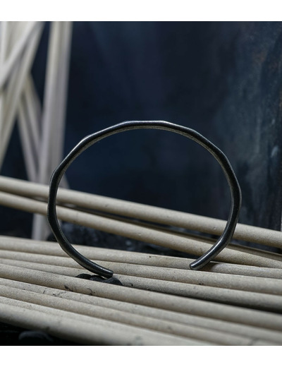Unicité renforcée par la patine noircie appliquée sur l'argent 925/1000 qui s'estompe peu à peu avec le temps. Vivant, le bijou révèlera des zones où l'aspect brillant du métal reprendra ses droits.
