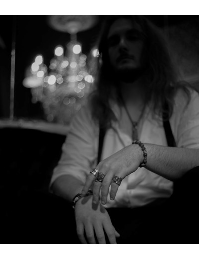 L'argent au titre légal 925/1000 subit un traitement brutal, rude, le résultat après polissage des bagues, bracelets, colliers, bruts, singuliers et harmonieux.