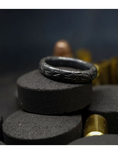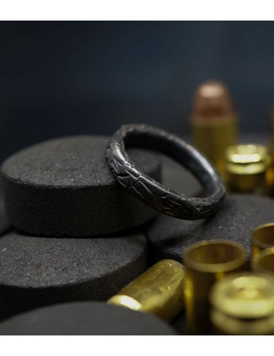 Unicité renforcée par la patine noircie appliquée sur l'argent 925/1000 qui s'estompe peu à peu avec le temps. Vivant, le bijou révèlera des zones où l'aspect brillant du métal reprendra ses droits.
