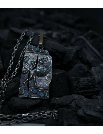Unicité renforcée par la patine noircie appliquée sur l'argent 925/1000 qui s'estompe peu à peu avec le temps. Vivant, le bijou révèlera des zones où l'aspect brillant du métal reprendra ses droits.