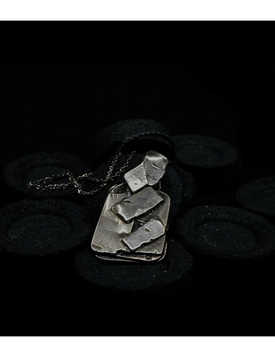 Unicité renforcée par la patine noircie appliquée sur l'argent 925/1000 qui s'estompe peu à peu avec le temps. Vivant, le bijou révèlera des zones où l'aspect brillant du métal reprendra ses droits.