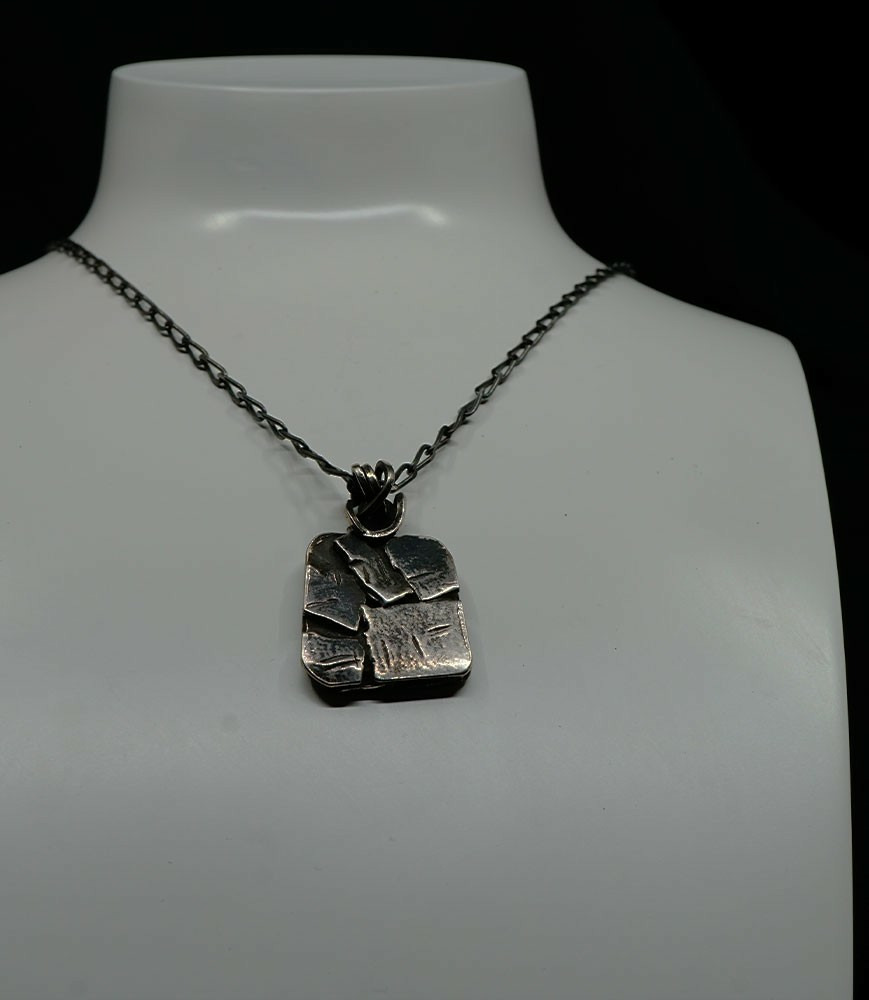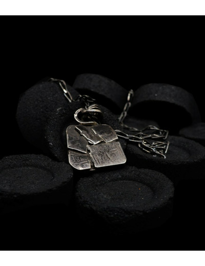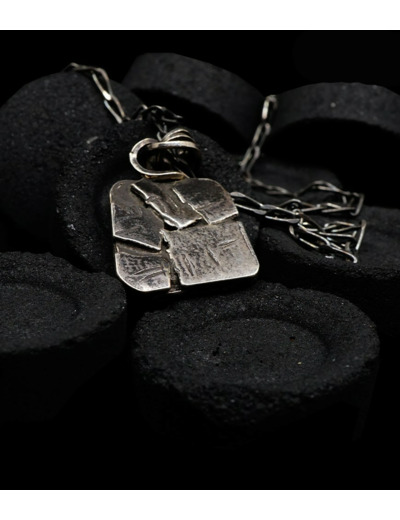 Unicité renforcée par la patine noircie appliquée sur l'argent 925/1000 qui s'estompe peu à peu avec le temps. Vivant, le bijou révèlera des zones où l'aspect brillant du métal reprendra ses droits.