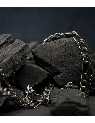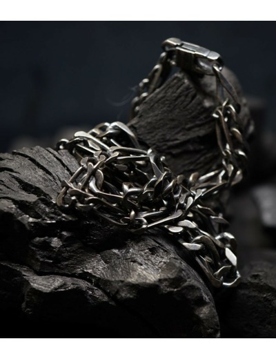Unicité renforcée par la patine noircie appliquée sur l'argent 925/1000 qui s'estompe peu à peu avec le temps. Vivant, le bijou révèlera des zones où l'aspect brillant du métal reprendra ses droits.