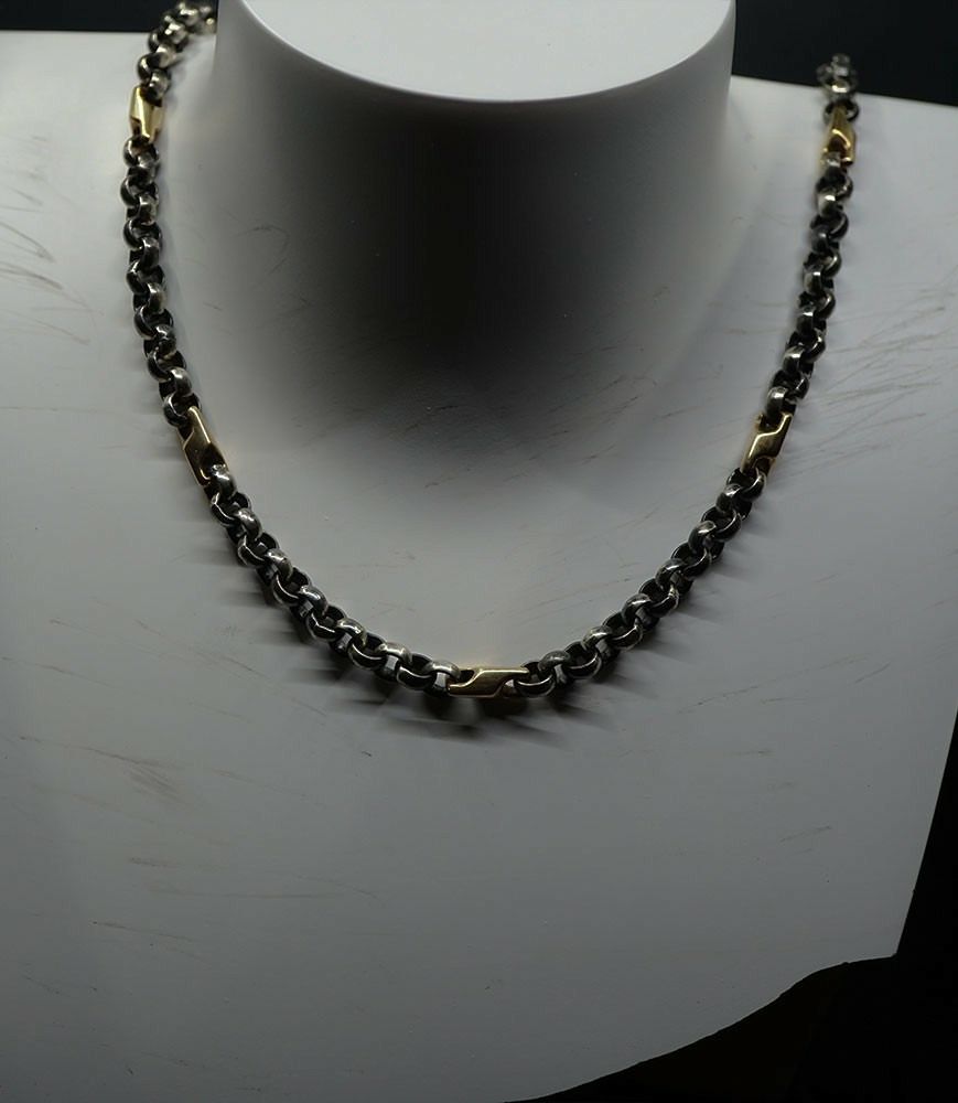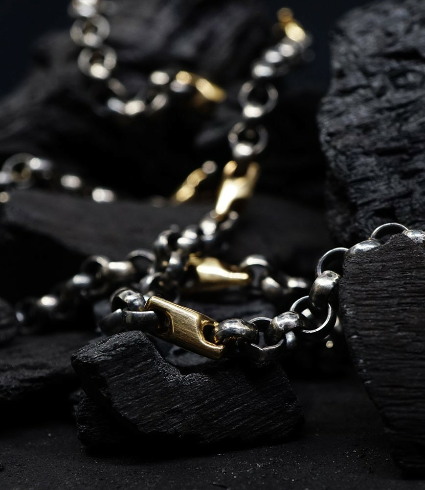 L'argent au titre légal 925/1000 subit un traitement brutal, rude, le résultat après polissage des bagues, bracelets, colliers, bruts, singuliers et harmonieux.