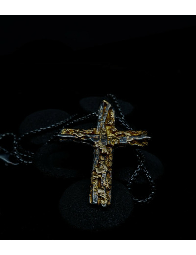 Unicité renforcée par la patine noircie appliquée sur l'argent 925/1000 qui s'estompe peu à peu avec le temps. Vivant, le bijou révèlera des zones où l'aspect brillant du métal reprendra ses droits.