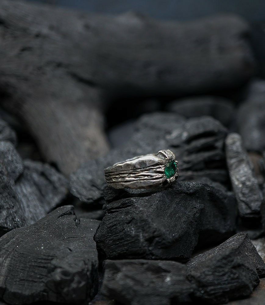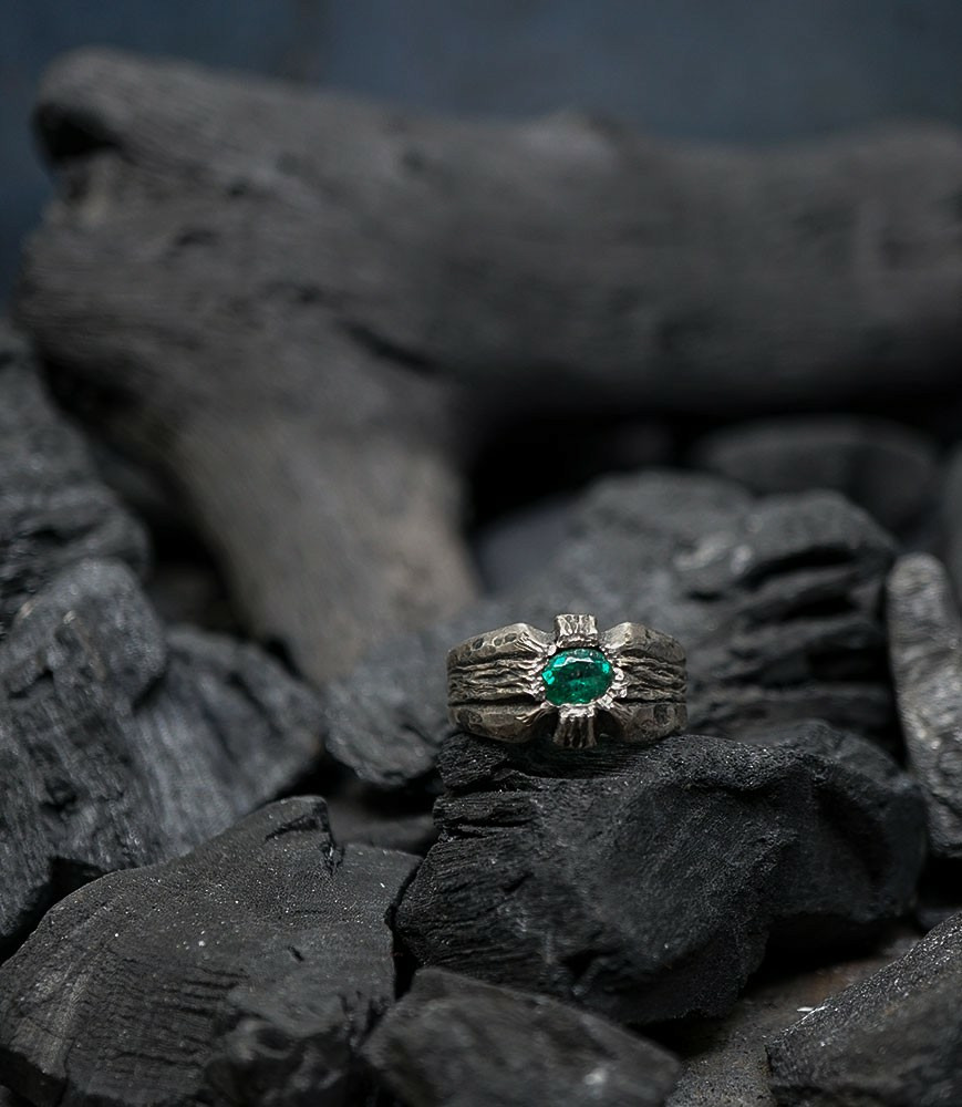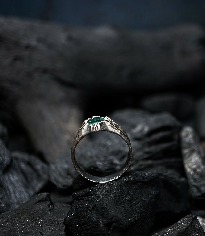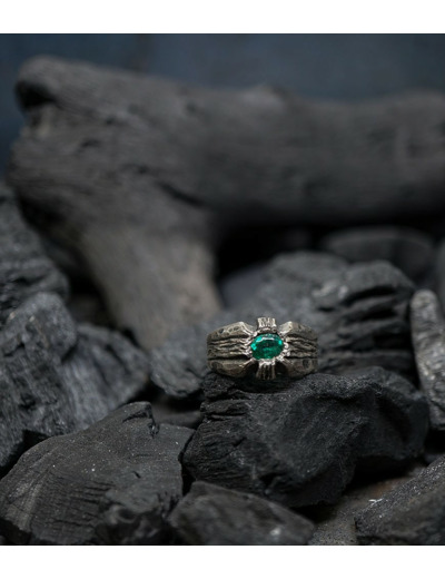 Héphaïstos Stones Collection - Bague Emeraude en Argent Massif