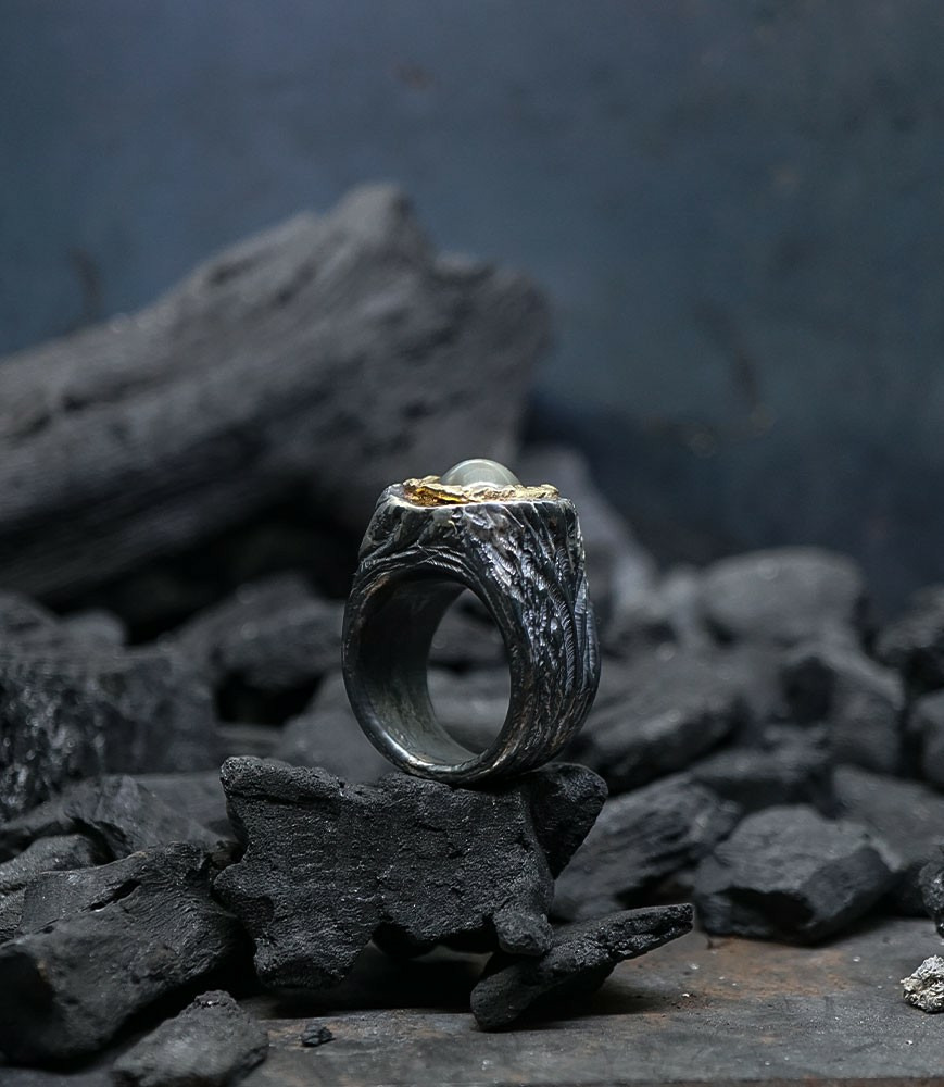 Héphaïstos Stones Collection - Bague Pierre de lune, or et Argent Massif