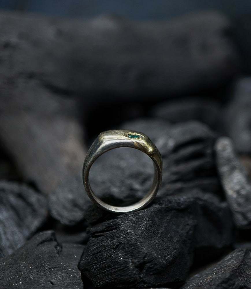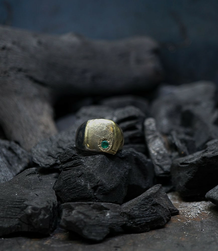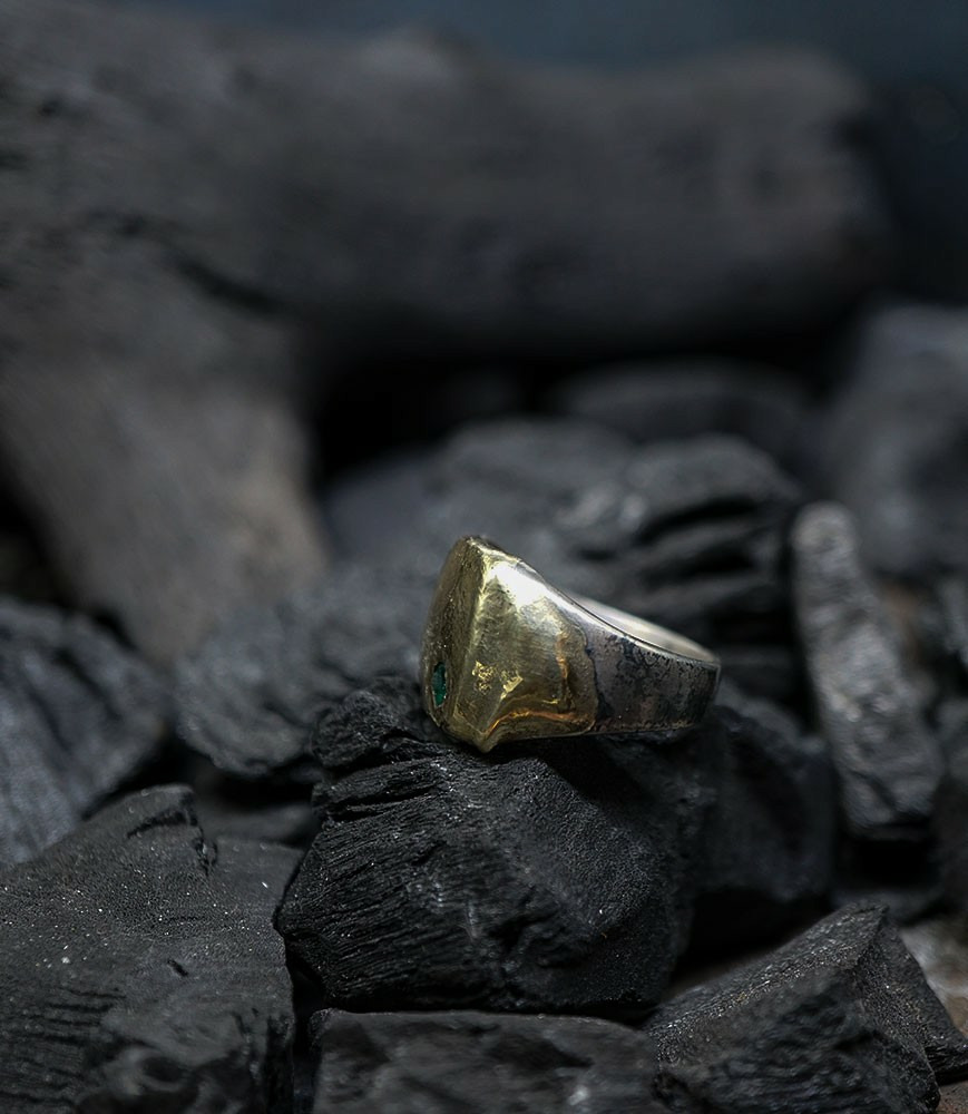 Héphaïstos Stones Collection - Bague Emeuraude, Or et Argent Massif