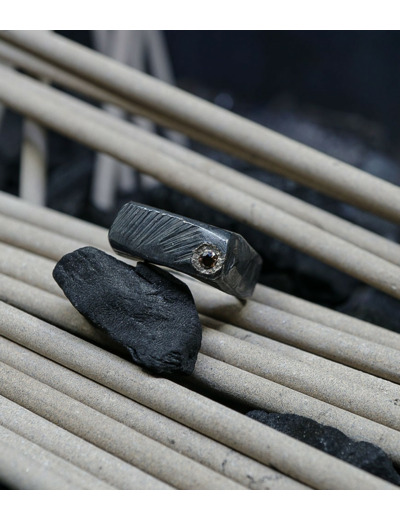 Héphaïstos Stones Collection - Bague Diamant Brun et Argent Massif