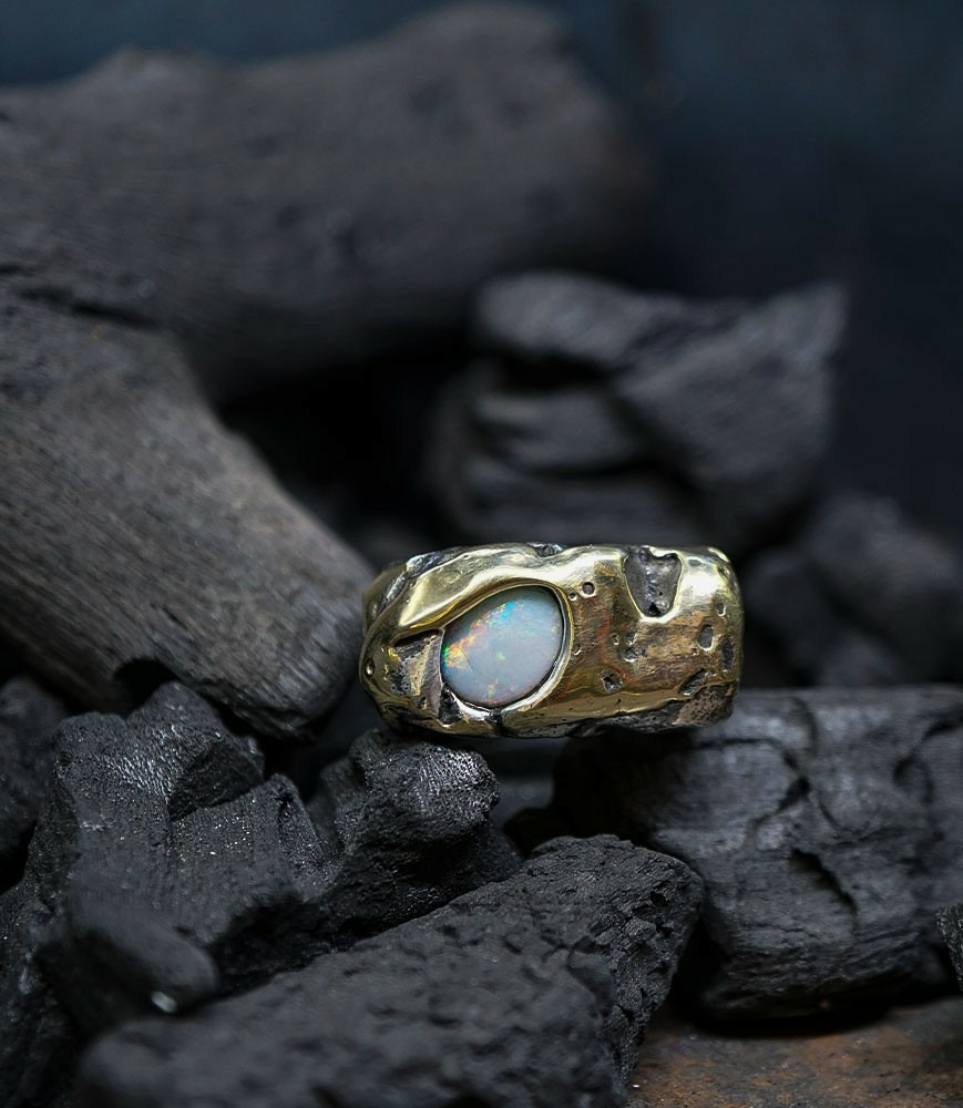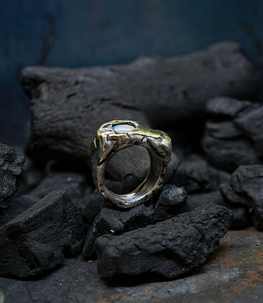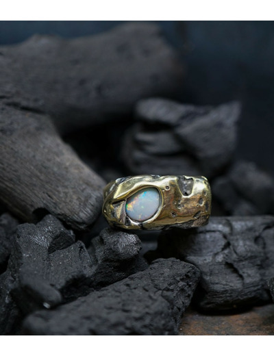 Héphaïstos Stones Collection - Bague Opale, Or et Argent Massif