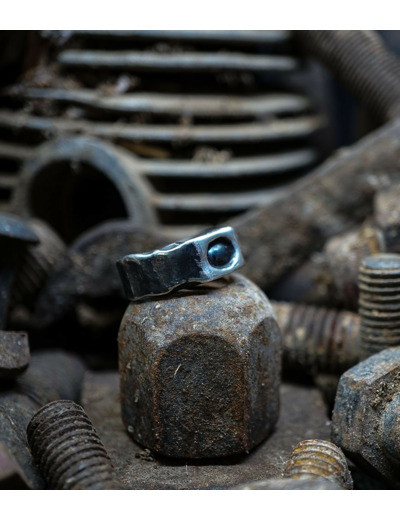 Unicité renforcée par la patine noircie appliquée sur l'argent 925/1000 qui s'estompe peu à peu avec le temps. Vivant, le bijou révèlera des zones où l'aspect brillant du métal reprendra ses droits.