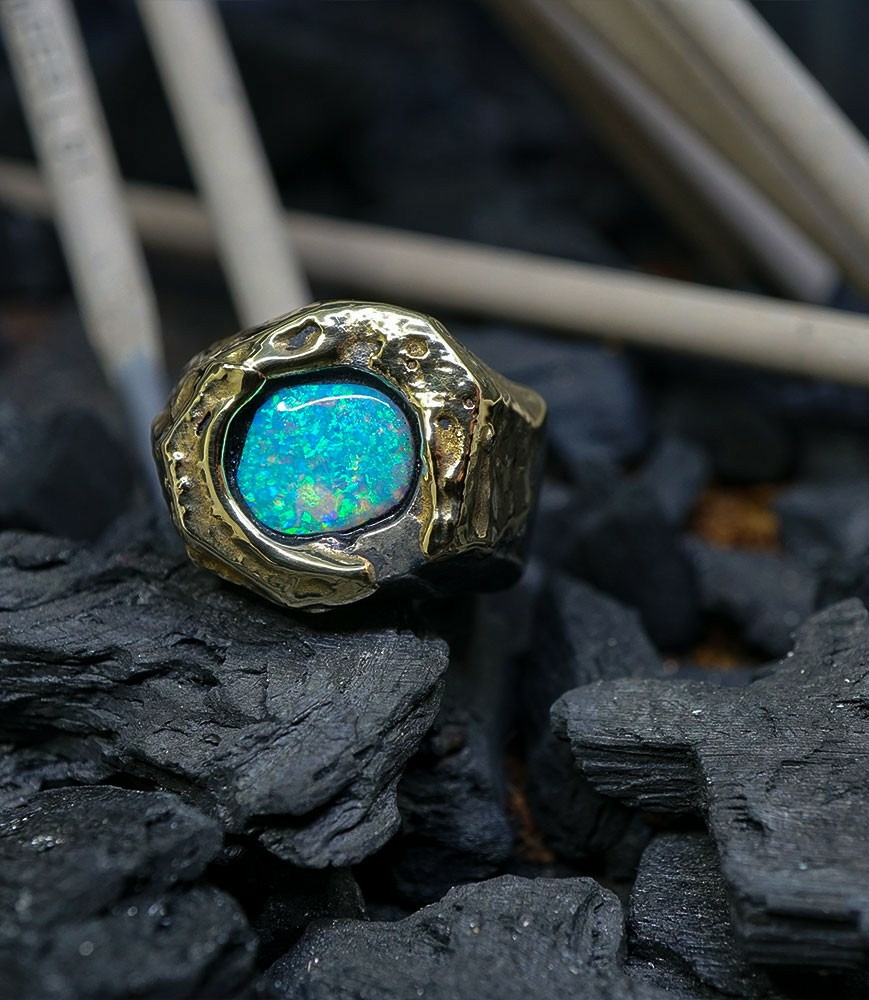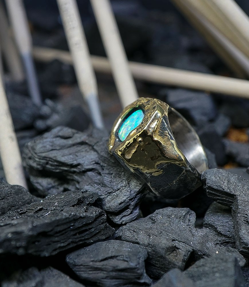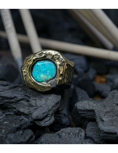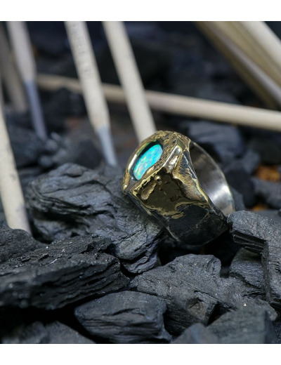 Héphaïstos Stones Collection - Bague Opale, Or et Argent Massif