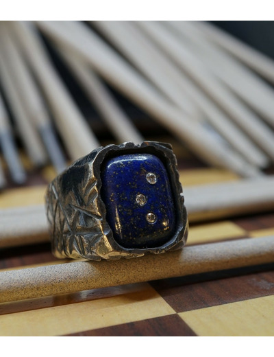 Héphaïstos Stones Collection - Bague Diamants, Argent Massif et Lapis Lazuli