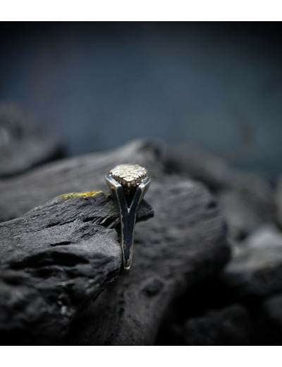 Unicité renforcée par la patine noircie appliquée sur l'argent 925/1000 qui s'estompe peu à peu avec le temps. Vivant, le bijou révèlera des zones où l'aspect brillant du métal reprendra ses droits.