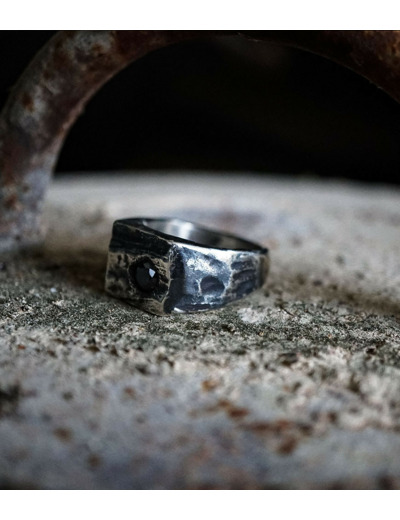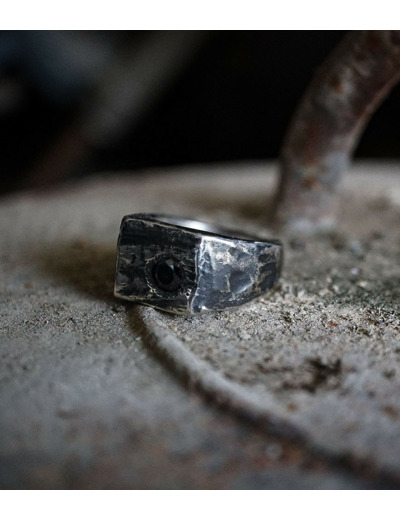Unicité renforcée par la patine noircie appliquée sur l'argent 925/1000 qui s'estompe peu à peu avec le temps. Vivant, le bijou révèlera des zones où l'aspect brillant du métal reprendra ses droits.
