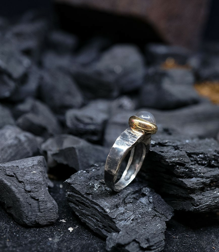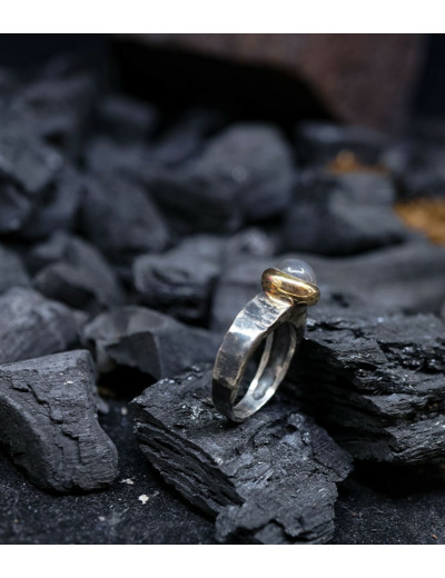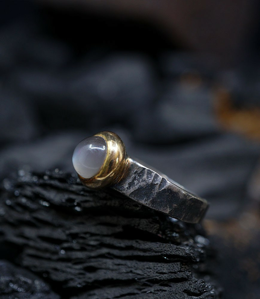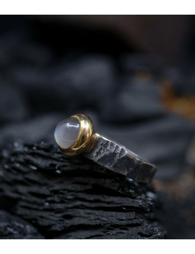 Héphaïstos Stones Collection - Bague Pierre de lune, Or Argent Massif.