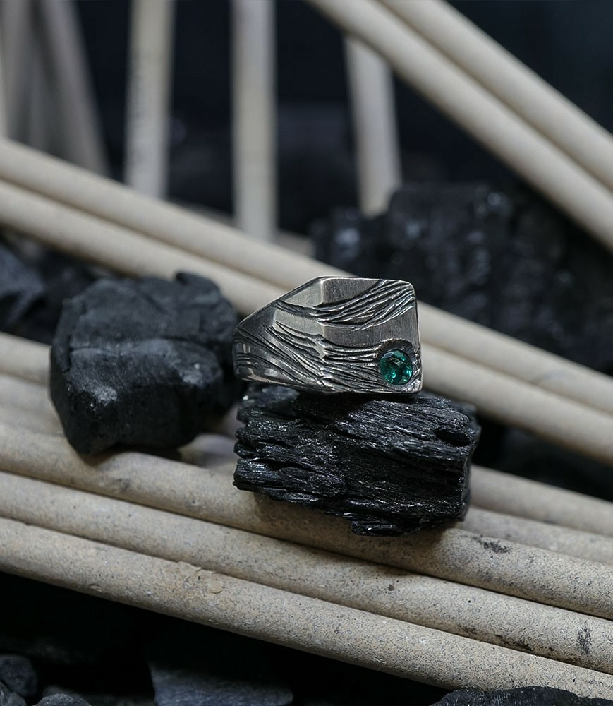 Héphaïstos Stones Collection - Bague Emeraude et Argent Massif