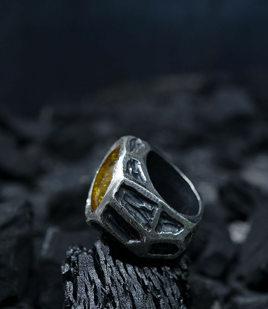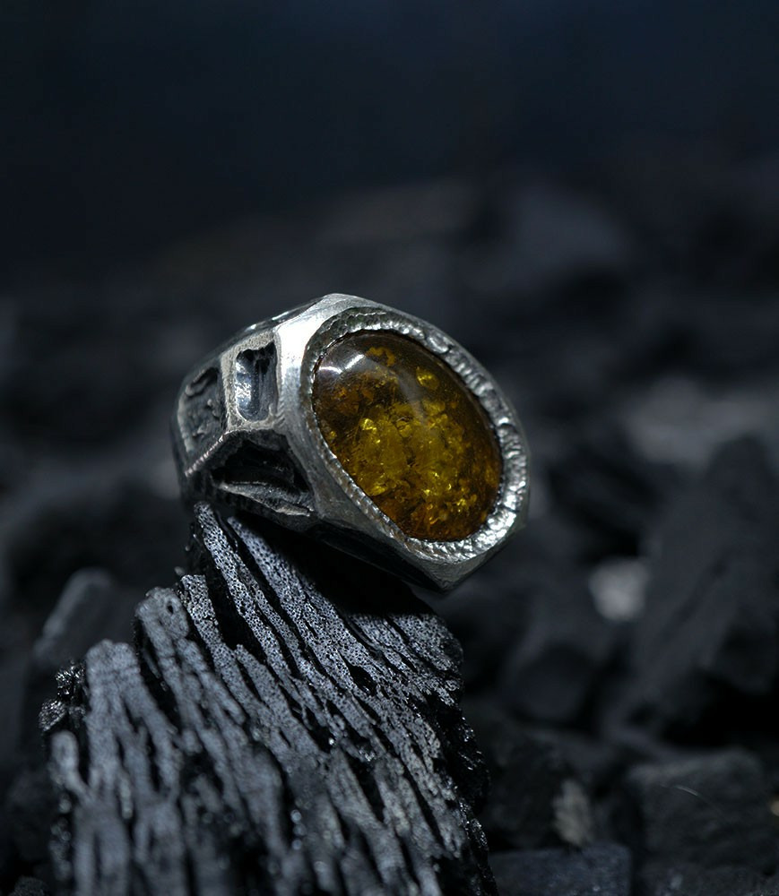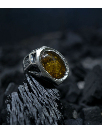 Héphaïstos Stones Collection - Bague Ambre et Argent Massif