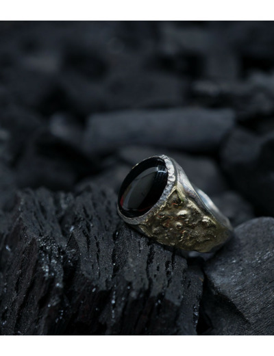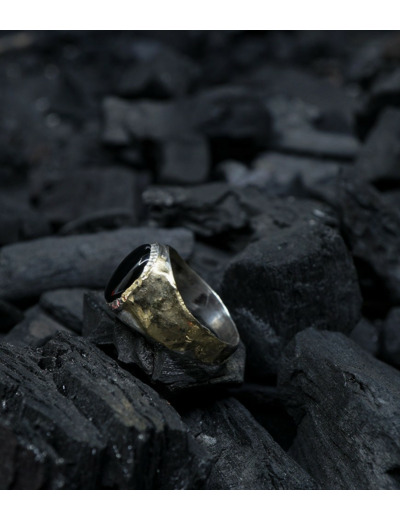 Héphaïstos Stones Collection - Bague Onyx, Or et Argent Massif