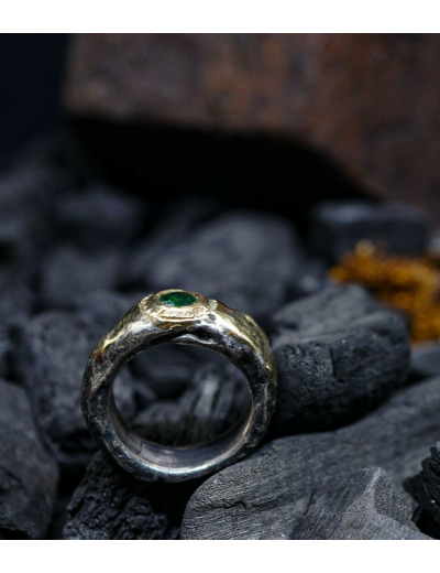 Héphaïstos Stones Collection - Bague Emeraudes, Or et Argent Massif