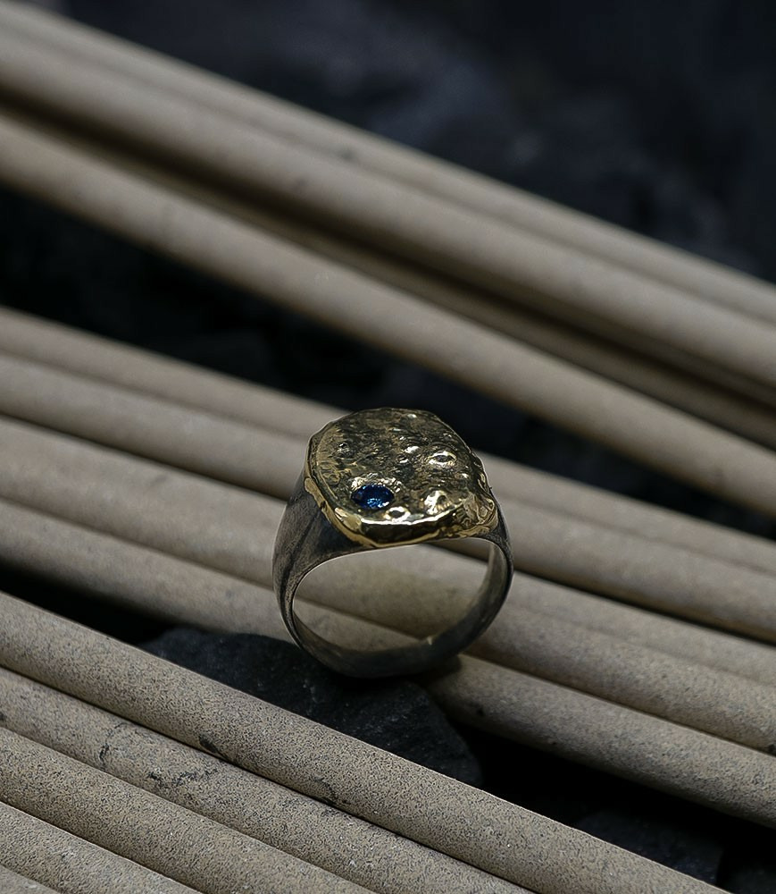 Héphaïstos Stones Collection - Bague Saphir, Or et Argent Massif