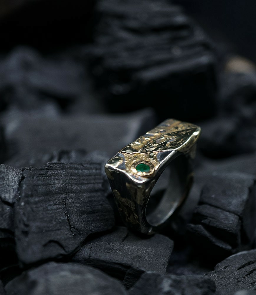Héphaïstos Stones Collection - Bague Emeraude, Or et Argent Massif
