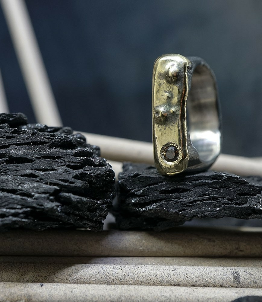 Héphaïstos Stones Collection - Bague Diamant, Or et Argent Massif