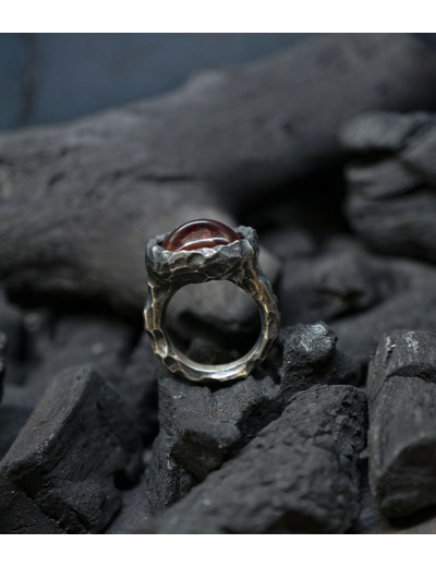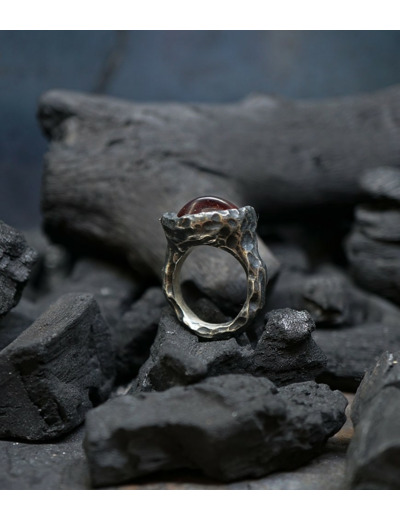 L'argent au titre légal 925/1000 subit un traitement brutal, rude, le résultat après polissage des bagues, bracelets, colliers, bruts, singuliers et harmonieux.