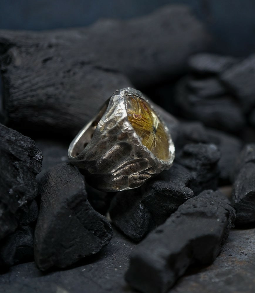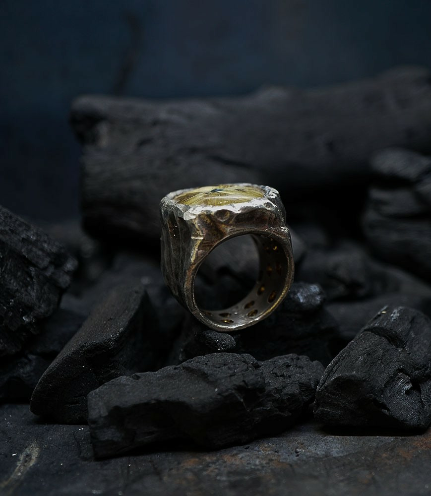 Héphaïstos Stones Collection - Bague Quartz Rutile et Argent Massif