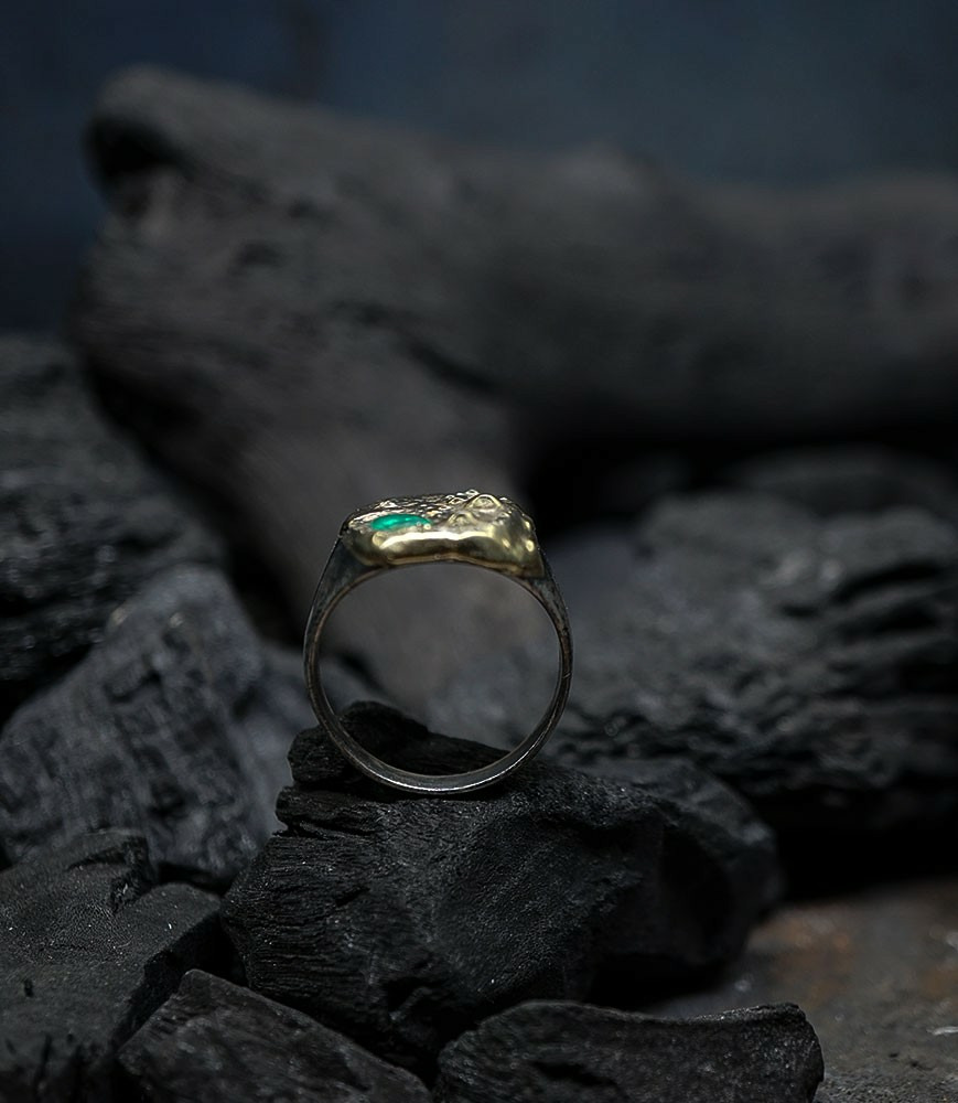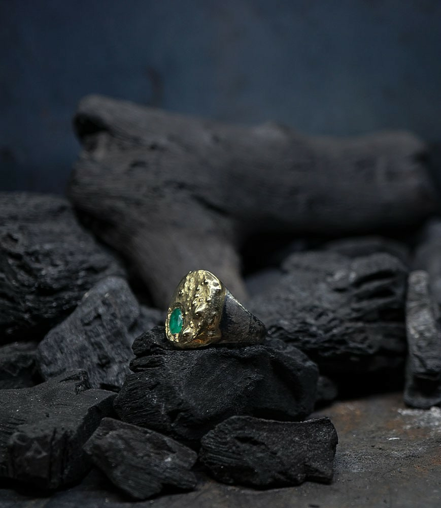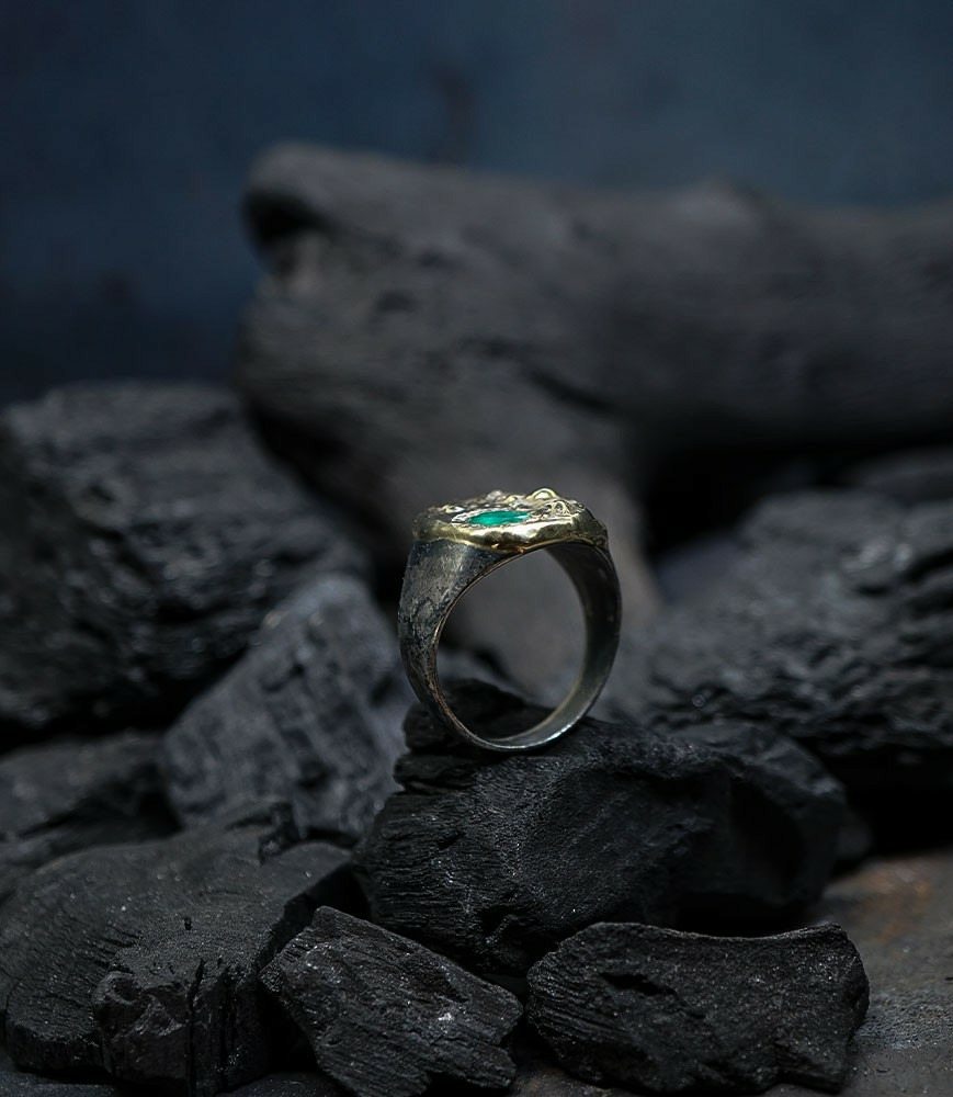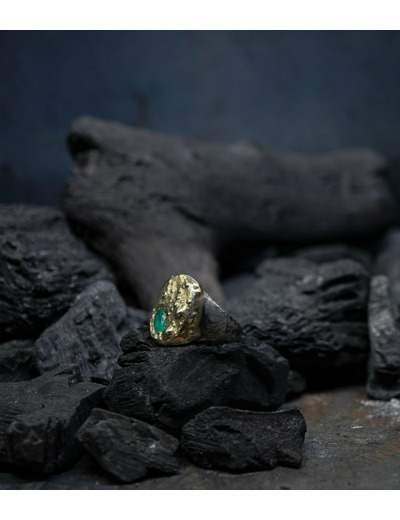 Héphaïstos Stones Collection - Bague Emeuraude, Or et Argent Massif